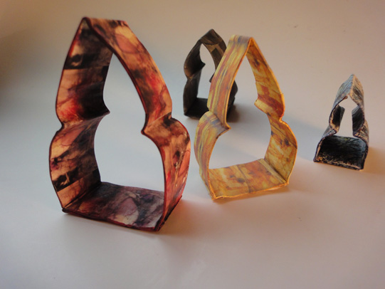 This work was made in response to guided fieldtrips in rural Australia witnessing the effects of Climate Change on plants and animals. As a city-dweller this highlighted how disengaged I was from the natural environment. In rural and urban settings I began collecting natural materials which I made into miniature ecoprint books. Flipping these nature books out they revealed a shape that is reminiscent of church windows or shrines; creating a nook to place a natural object. Here nature and culture coexist. What if we began to notice and care deeply for what it is we stand to lose?